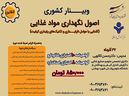 دوره آموزشی آنلاین اصول نگهداری مواد غذایی در تاریخ ۱۴۰۴/۰۹/۲۷ با حضور ۲۶ شرکت‌کننده برگزار گردید. لازم به ذکر است شرکت‌کنندگان دوره فوق از ۱۳ استان کشور نظیر تهران، البرز، خراسان بزرگ، آذربایجان غربی و شرقی، مازندران، گلستان، سمنان، و … بودند. هدف از برگزاری دوره آموزشی اصول نگهداری مواد غذایی: همانگونه که می‌دانیم، غذاها همیشه […]