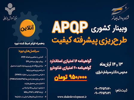 دوره آموزشی طرح‌ریزی پیشرفته کیفیت محصول APQP